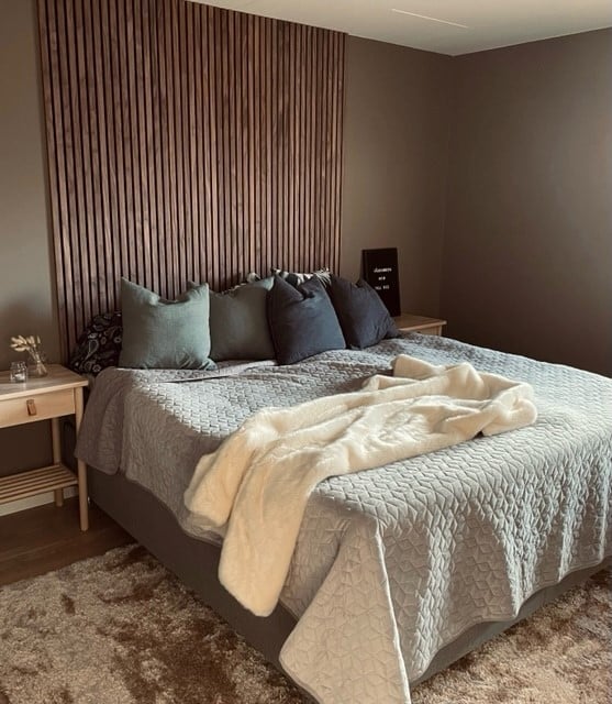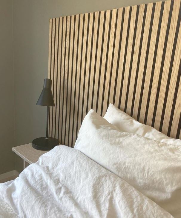 En sänggavel i akustikpanel är inte bara fin att se på utan skapar också en skönare akustik i rummet. Den ljuddämpande effektern är egentligen grunden till varför just som namnet säger akustikpanel togs fram från början. Numera är det också ett sätt att inreda och få in mjukare värden i rummet med trädets fina intryck.