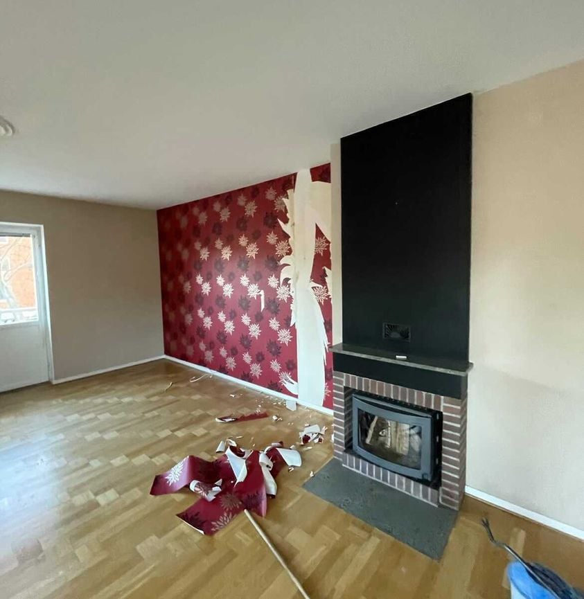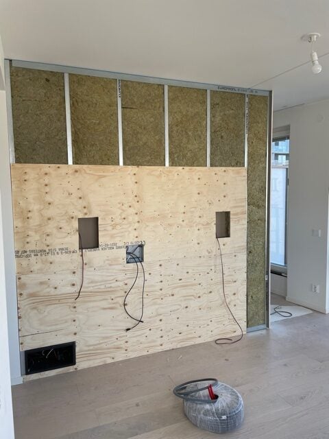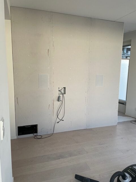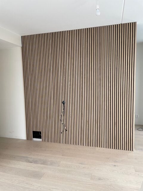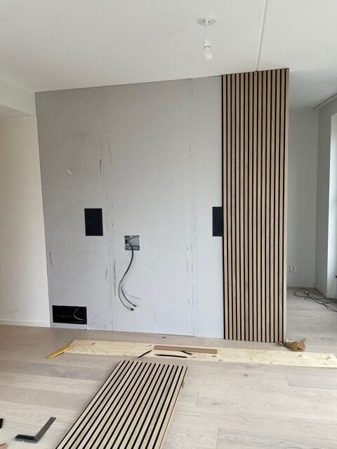 Nedan kan du se bilder på hur du kan göra steg för steg med akustikpanel till tv-väggen. Bilderna kommer från en av våra kunder.