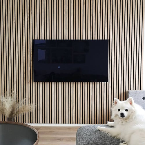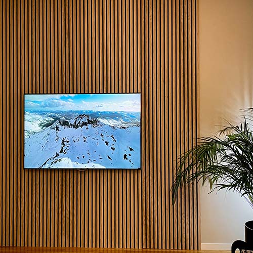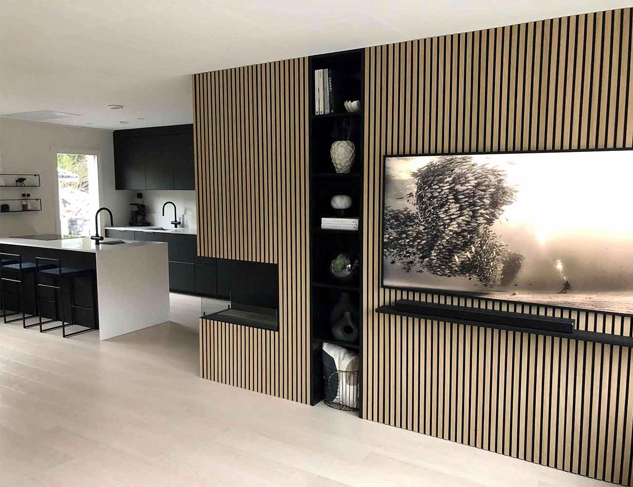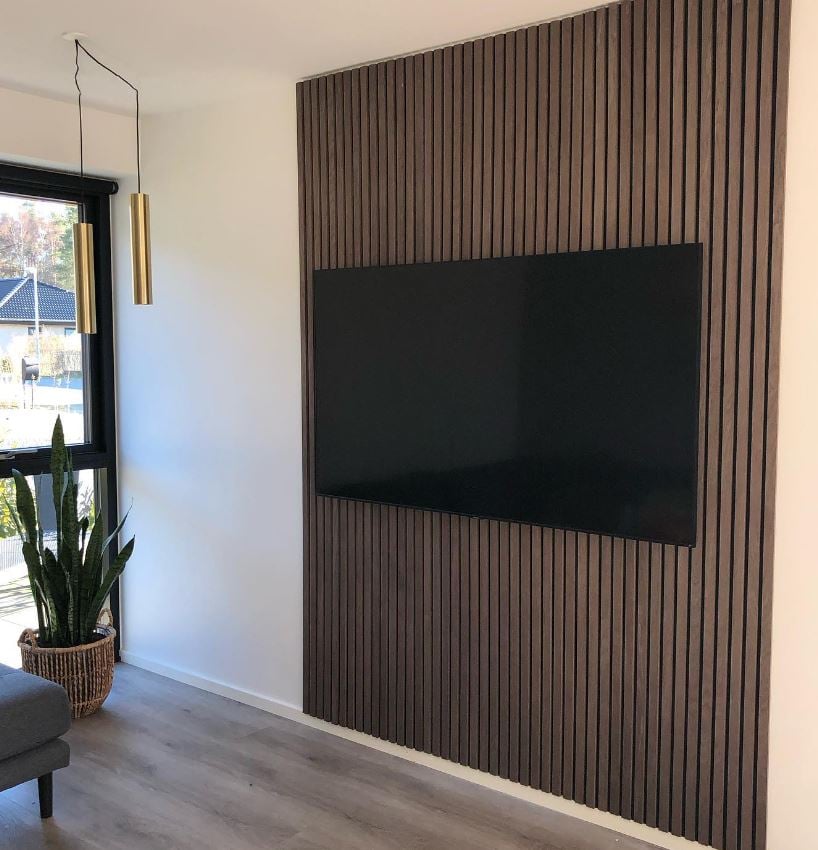När du använder vår akutikpanel som tv-vägg får du inte bara en snyggare design utan även en behagligare akustik i rummet.