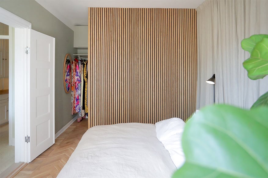 En egen walk-in closet av ribbväggar till sovrummet är inte bara estetiskt utan bidrar även med en förbättrad akustik . Om du är ny på att göra DIY projekt så kan walk-in closet av ribbväggar låta svårt och avancerat till en början, men faktum är att du inte behöver någon speciell kunskap om snickeri för att kunna montera upp ribbväggarna, det räcker att man är lite allmänt händig. Det är både enkelt och smidigt och det ger ditt sovrum ett fantastiskt lyft. Se nedan hur våra kunder Emelie och Pontus skapade sin walk-in closet.