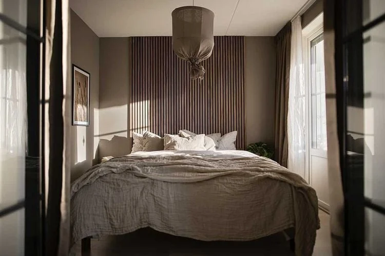 I sovrummet är lugn och harmoni avgörande. Akustikpaneler som sänggavel eller dekorativ vägg ger både en mjukare ljudmiljö och en varm, ombonad känsla.