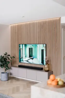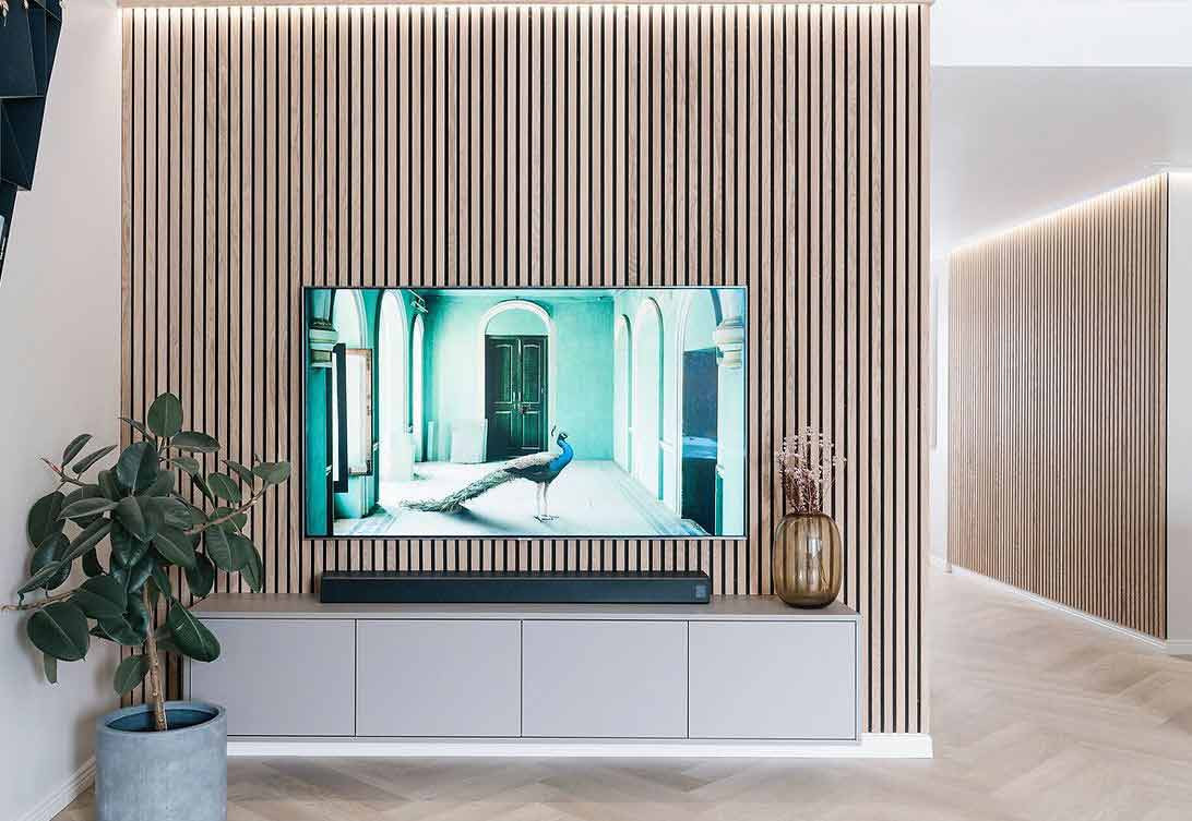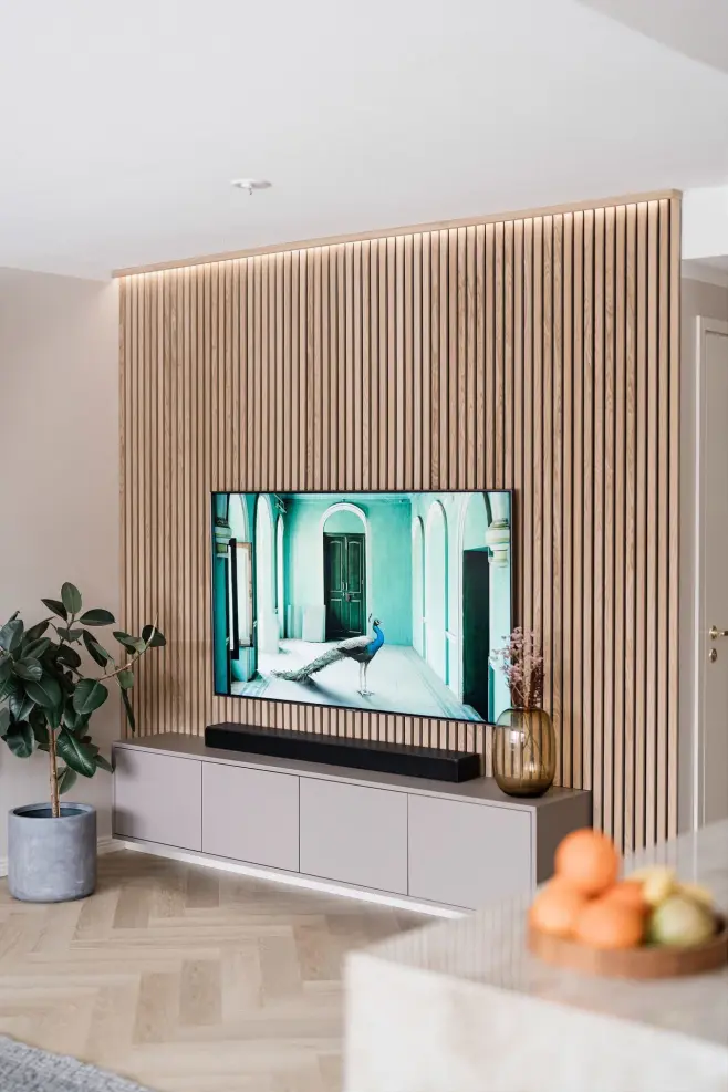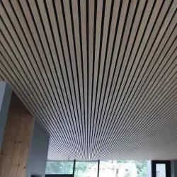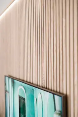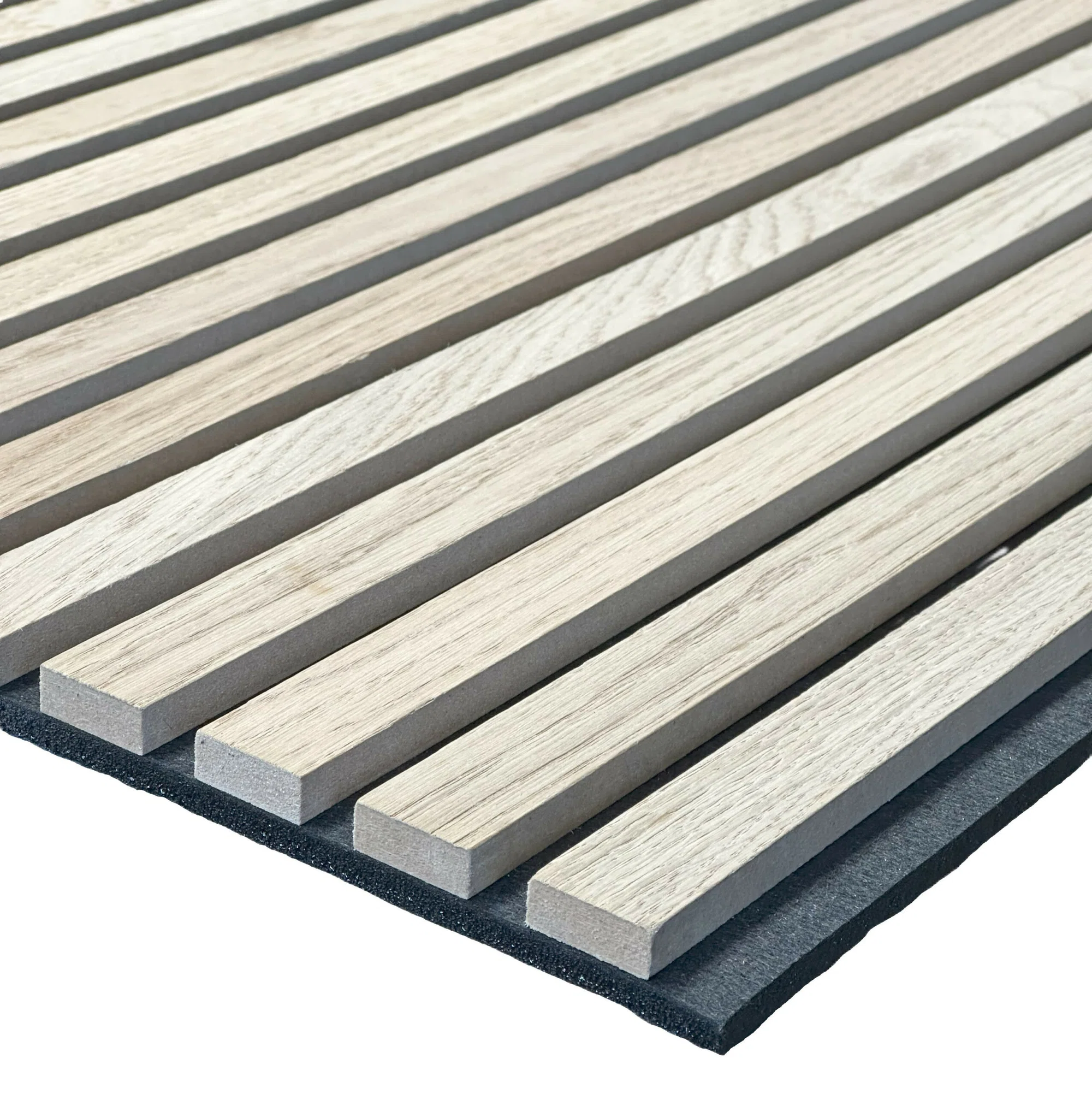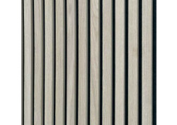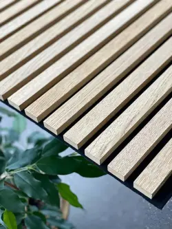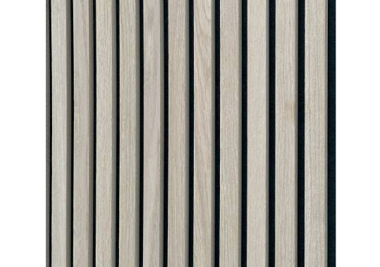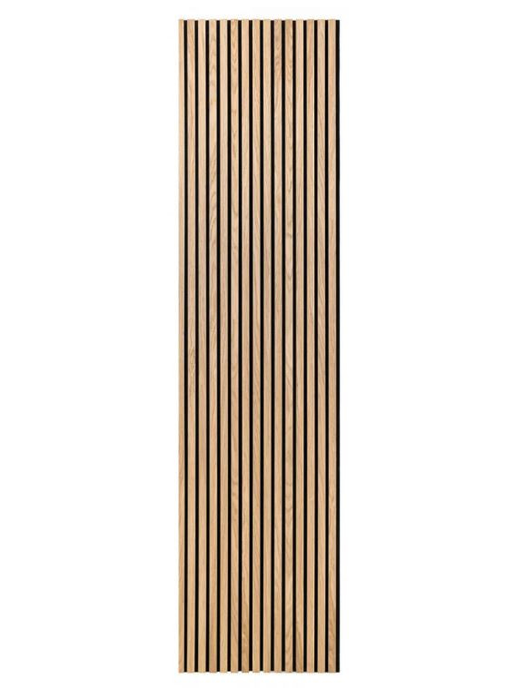 Ek är ett tidlöst träslag, som genom historien har används för allt från skeppsbygge till möbelsnickerier. Idag är eken kanske det vanligast förekommande träslagen i de flesta hem. Allt från golv, möbler och finsnickerier tillverkas i ek. Panelerna, med dess svarta filt smälter därmed sömlöst in i de allra flesta rum, samtidigt som den likfärgade MDF:en får ribborna att sticka ut mer optiskt från filten jämfört med ribbor med svart MDF.