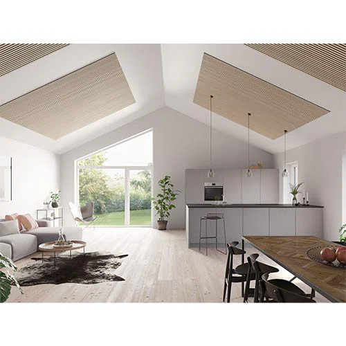 Panelen kan monteras både på vägg och i tak och passar lika bra i vardagsrum, kontor, restauranger eller andra miljöer där du vill kombinera snygg inredning med bättre akustik.