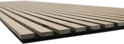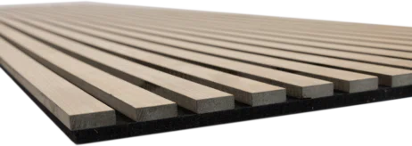 Lamellerna är tillverkade av svart genomfärgad MDF med en vacker ekfanér på framsidan som ger ett modernt och stilrent uttryck. Den enhetliga fanéren säkerställer att panelen ser perfekt ut utan kvistar, och den kan enkelt behandlas med olja för en djupare färgton.