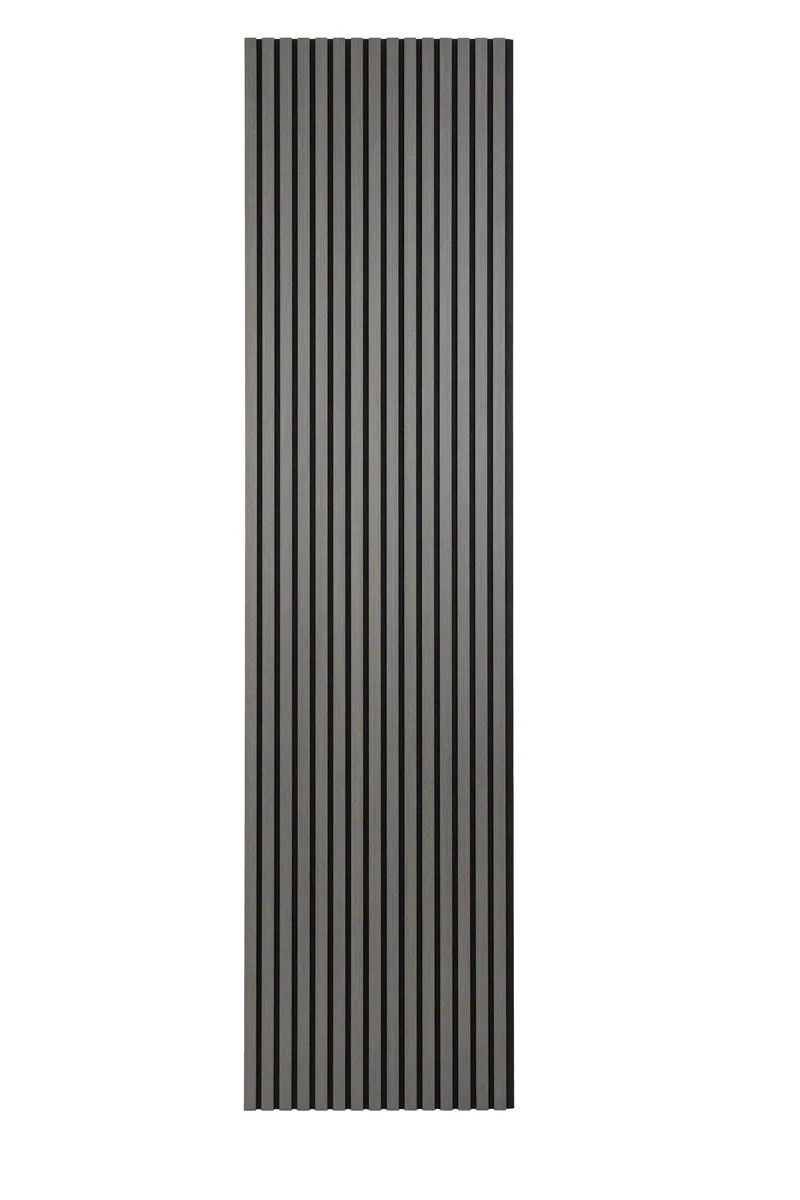 Lamellerna är tillverkade av svart genomfärgad MDF med en vacker ekfanér på framsidan som ger ett modernt och stilrent uttryck. Den enhetliga fanéren säkerställer att panelen ser perfekt ut utan kvistar, och den kan enkelt behandlas med olja för en djupare färgton.