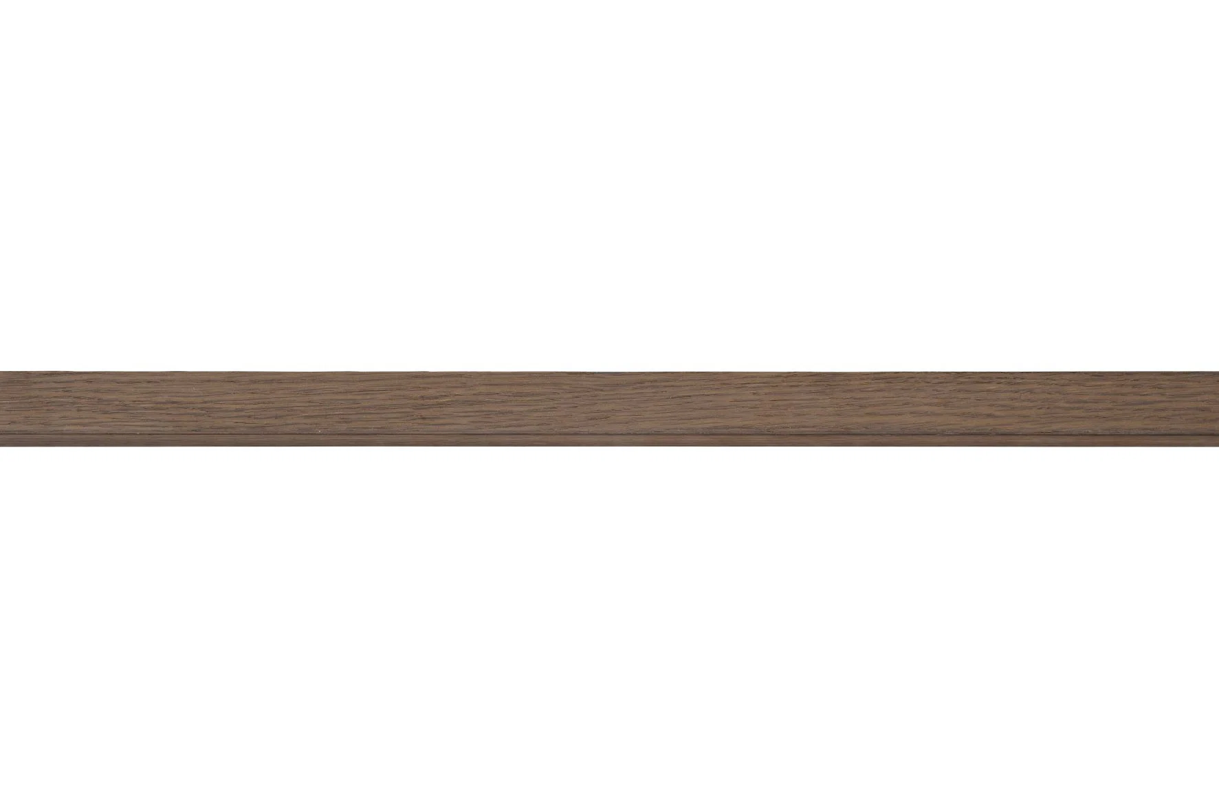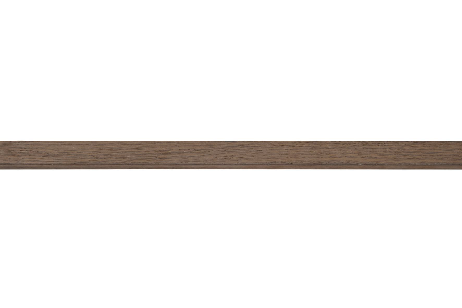 Fabriksoljad avslutningslist i Smoked Oak-färg. Avslutningslisterna agerar som sista ribba där avsluten blir synliga, exempelvis mitt på en vägg eller på ett ytterhörn. Listerna är fanérade på två sidor och har samma färg som ribborna på panelen på kortsidan som monteras mot panelen.