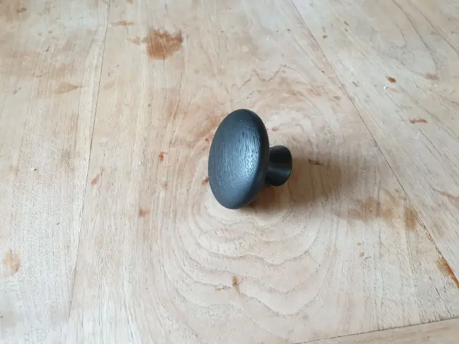 Stilig och rejäl knopp i svartmålad massiv ek. Designad och tillverkad i Danmark. Knoppen monteras enkelt med medföljande skruv. Passar såväl i hallen, sovrummet eller klädkammaren.
