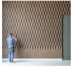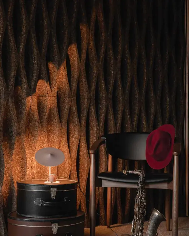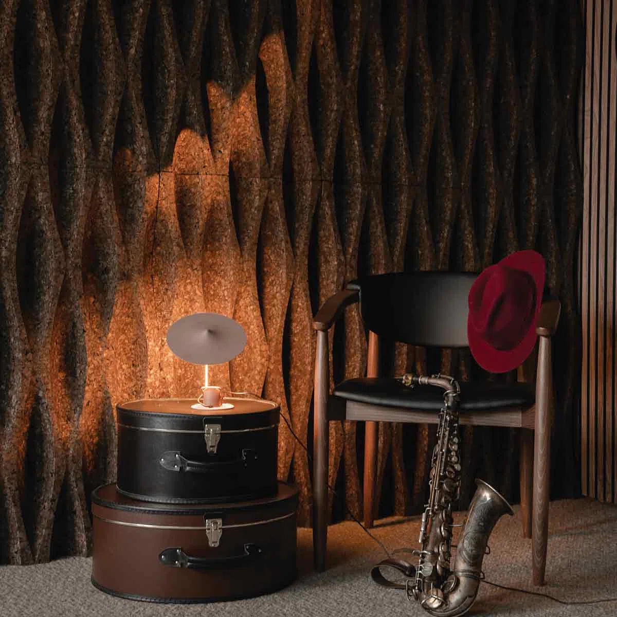 Kork tillverkas av korkekens bark och får naturligt en naturlig och oregelbunden struktur. Varje vägg blir med andra ord unik och de härligt mörka tonerna i träet ger liv och naturlig ro vart än det hamnar. I kombination med valnötsdetaljer, eller som komplement till en vägg klädd med valnötspanel kommer det absolut bästa ur bägge materialen fram.