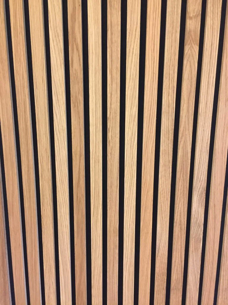 Ribbvägg i ek linolja. Ger en tidlös, snygg atmosfär och fungerar också som akustikpanel. Ribbväggen är producerad i Europa i FSC-certifierat trä. Lätt att montera direkt på väggen med skruv eller lim. Provpaket går att beställa!