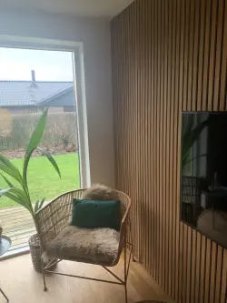 Akustikpanel i ek linolja från stonewall.se . Ger en tidlös, snygg atmosfär och fungerar också som akustikpanel.