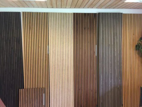 Med våra ribbväggar får du en elegant vägg och en modern känsla i hela rummet. Modern inredning innebär ofta högt i tak och glest med möbler. Det medför till en sämre akustik och med ljud som studsar. Med en ribbvägg, som också kallas för akustikpanel, förbättras akustiken då panelen absorberar ljudet i rummet. Många restauranger, hotell och större offentliga miljöer använder akustikpaneler för att dämpa ljudnivån och förhindra återklang (eko). Oavsett om du väljer att klä in en hel vägg eller en del av den skapar panelen ändå ett otroligt lyft i rummet – estetiskt och akustiskt.