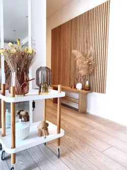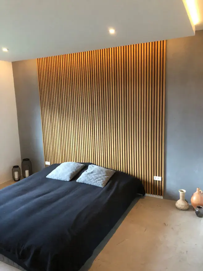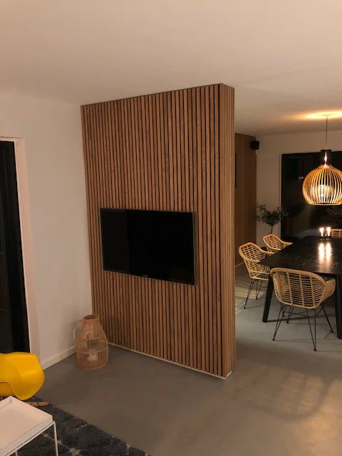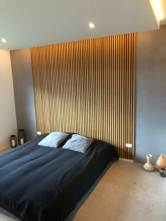 Med våra ribbväggar får du en elegant vägg och en modern känsla i hela rummet. Modern inredning innebär ofta högt i tak och glest med möbler. Det medför till en sämre akustik och med ljud som studsar. Med en ribbvägg, som också kallas för akustikpanel, förbättras akustiken då panelen absorberar ljudet i rummet. Många restauranger, hotell och större offentliga miljöer använder akustikpaneler för att dämpa ljudnivån och förhindra återklang (eko). Oavsett om du väljer att klä in en hel vägg eller en del av den skapar panelen ändå ett otroligt lyft i rummet – estetiskt och akustiskt.