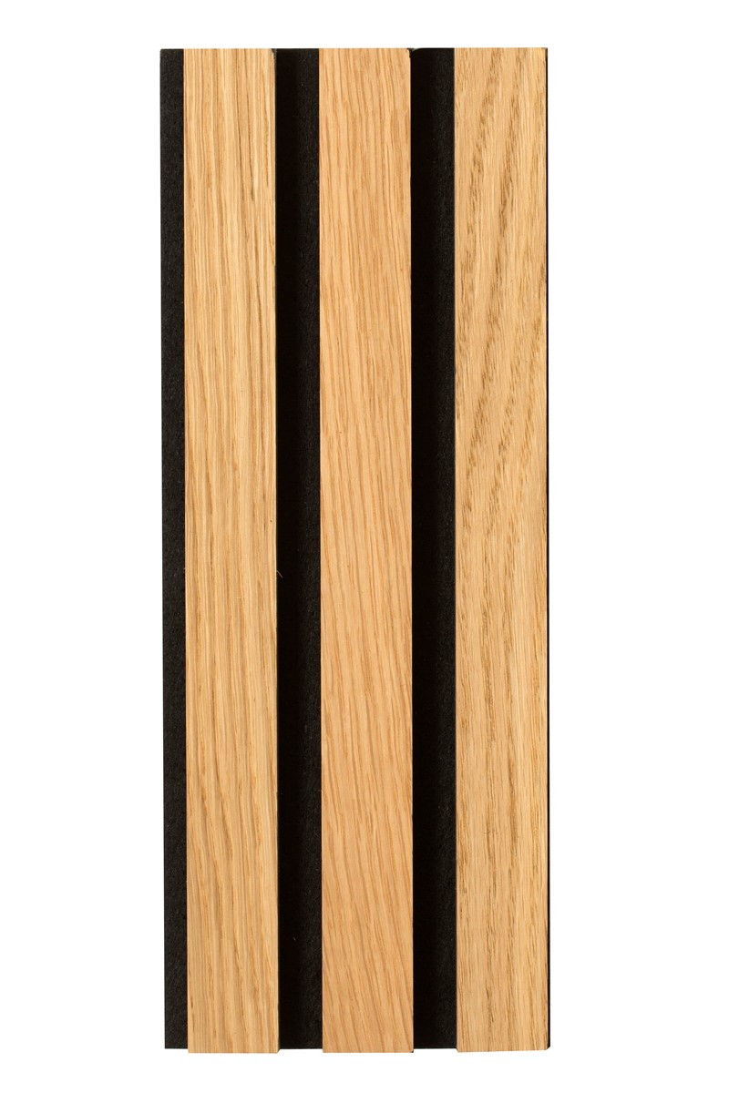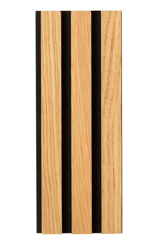 Ribbvägg med ek i stilen natur i toppkvalité. Skapar en fantastik atmosfär och göra akustiken bättre. Ribbpanelen är enkelt att montera med lim eller skruv direkt på väggen. Ribbpanelen som också kallas akupanel är tillverkad i Danmark med FSC certifierat trä. Olja medföljer för behandling av träribborna. OBS! Bilderna visar olika sorter träribbor. Produktbild på denna ribbvägg är första bilden. Provpaket går att beställa! Denna ribbvägg ska behandlas med medföljande olja.