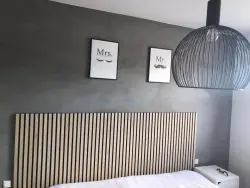Sänggavel i akustikpanel i obehandlad ek, 240 cm bred. Sänggaveln är gjord av våra Premium ribbväggar i dansk toppkvalité. Skapar ett markant lyft till rummet och ger bättre akustik. Mått på sänggaveln är 240 x 120 cm. Sänggaveln levereras i moduler med 4 st av 120x60x2 cm akustikpanel. Producerad i Danmark i FSC-certifierat trä och återanvänt material i akustikfilten. Astma och allergivänlig. OBS! Skruvar ingår ej!