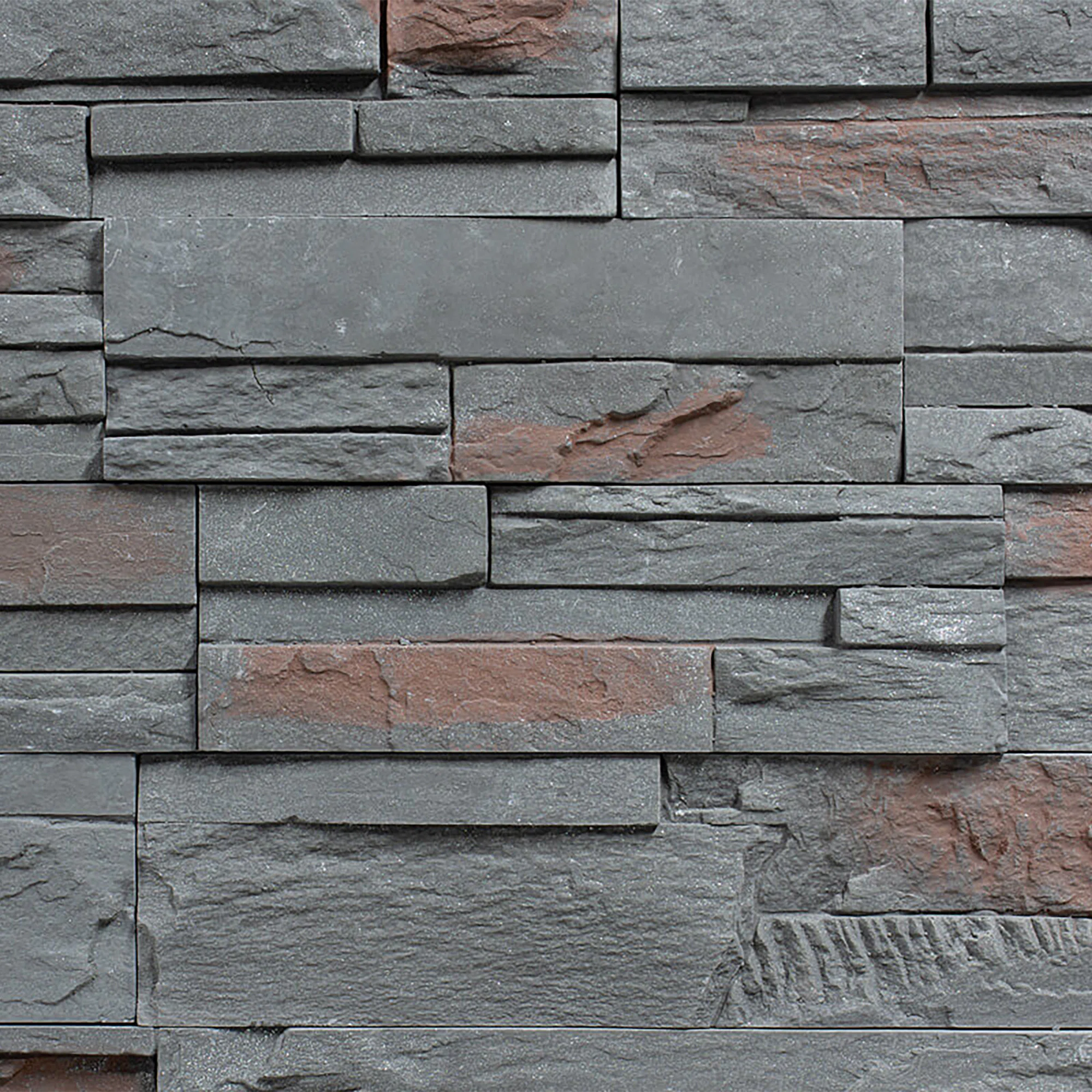 Stenväggen Brasilia black, med sin grovhuggna yta, ger textur och form till varje yta som annars kan framstå som blank. Stenen är ett utmärkt val som dekorvägg i köket, badrummet, runt kaminen eller i sovrummet. Den traditionellt gråa stenutseendet bryts av med rödbruna inslag som ger rummen ett stråk av liv i det annars massiva intrycket. Stenen fungerar även utmärkt utomhus, som en del av fasaden eller andra väggar i trädgården. Trädgårdsmöblerna smälter enkelt ihop med stenen och får ännu mer effekt i kombination med exteriörbelysning. Stenen är enkel att installera och ingen fog behövs mellan stenarna.